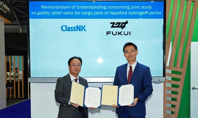 Fukui Seisakusho (Fukui) and ClassNK have signed a Memorandum of Understanding (MoU) concerning a joint study on a safety relief valve for the cargo tanks of liquefied hydrogen (LH2) carriers.