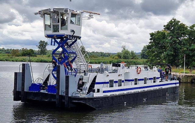 It has taken about 10 months to convert the two vessels. The old engines have been replaced with modern diesel generators manufactured by SCANIA and Caterpillar; being based on truck engines, also certified for use on board inland waterway vessels, they operate with stage 5 exhaust gas treatment and ensure that particles, which damage the environment, are no longer able to make their way into the air. This means that Rhenus is achieving a reduction in pollution caused by particulate matter of as much as 40%. The engines have a rating of 740kW, which represents a tripling of the performance of the former units. The engine room has been completely gutted and refurbished to create space for the significantly larger engines. All the old pumps, electronic equipment and subassemblies have given way to the latest electronics and a modern control cabinet. The new engine is encapsulated in a Silence Pack enclosure and operates very quietly, so that the crew on board can rest at night. A new power train with thrust bearings and shaft seals has been added and the rudder hydraulics has been thoroughly updated. The two vessels will continue to operate on the eastern German inland waterways.