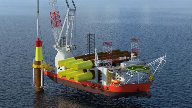 The agreement will see KM supply a comprehensive technology package for the F-class jack-up which will be able to transport up to six XL monopiles (weighing 2,300t-2,600t each) per round-trip, substantially improving efficiency over current vessels.