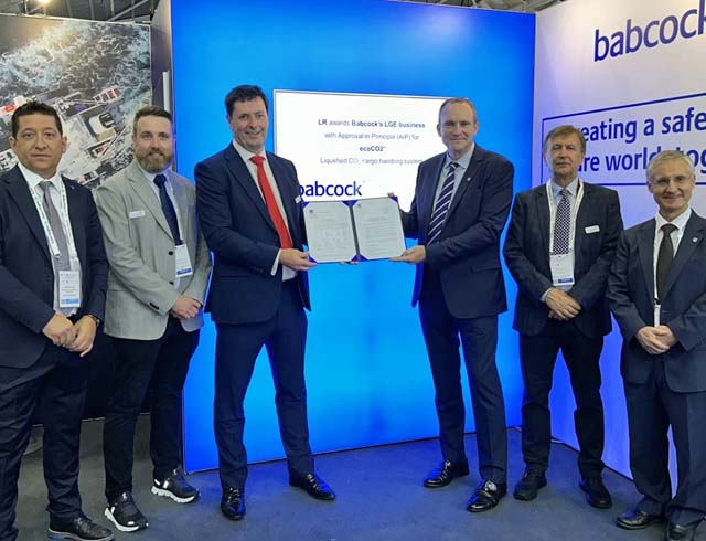 Jose Navarro, LR Global Gas Technology Director, said: “Lloyd’s Register is delighted to award Babcock Approval in Principle for its liquefied CO2 cargo handling system and multi-fuel gas supply system. ecoCO2 represents a critical piece of the CCUS supply chain that will contribute to the reduction of global warming. It has been appraised fully in compliance with the requirements of LR’s Rules and Regulations for the Carriage of Liquefied CO2, providing assurance to owners and relevant stakeholders for the safe and efficient transportation of LCO2. ecoFGSS-FLEX represents a solution for the conversion of a fuel gas system and facilitating the use of ammonia as fuel – a significant positive step to assist owners in the decarbonisation path of their ships. coFGSS-FLEX has been approved for compliance with LR’s Rules and Regulations for the Classification of Ships using Gases or other Low-flashpoint Fuels, including Appendix LR2 – Requirements for Ships Using Ammonia as Fuel.”