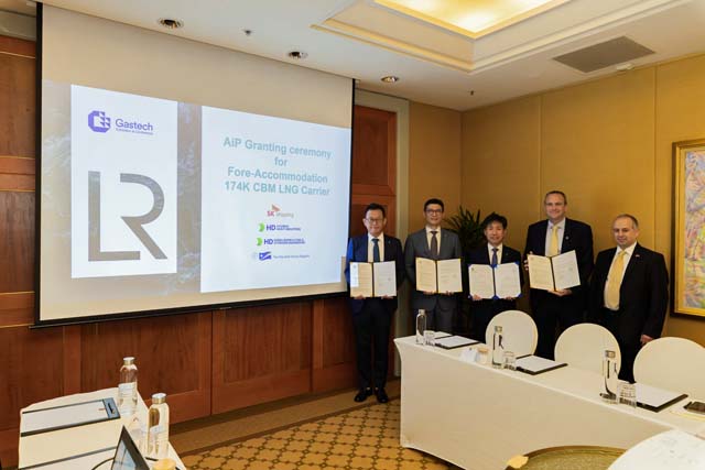Lloyd’s Register (LR) has awarded Design Approval to HD Korea Shipbuilding and Offshore Engineering (HD KSOE) and HD Hyundai Heavy Industries (HD HHI) for a novel ‘Fore-accommodation’ LNG Carrier (LNGC), designed to transport LNG with the capability to accommodate a number of alternative fuels.