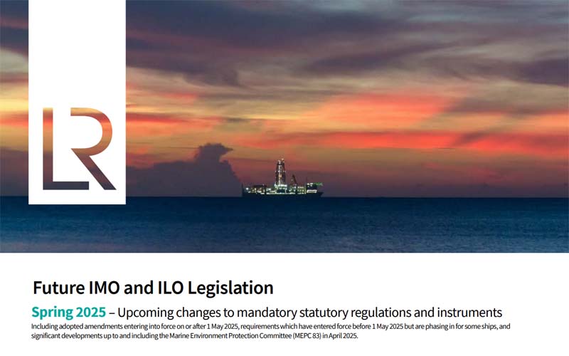 Mark Towl, LR principal regulatory risk specialist, said: “The number and complexity of the regulatory updates that are taking place is challenging to understand. The recent agreement to a net zero framework to reduce the GHG intensity of shipping, and the consequential measures to enable that to happen safely, are historically among the biggest regulatory disrupters to shipping’s business model. We have produced the latest edition of the Future IMO and ILO Legislation to continue LR’s role of providing trusted advice to our clients as they adapt to the quickly changing increasing complex regulatory framework. Compliance will involve revising operational procedures, upgrading equipment, ensuring crews’ training is updated, and planning for future technologies that contribute to a safer and more sustainable future for shipping. LR can support shipyards’, owners’, operators’ and managers’ preparation for compliance with the upcoming changes.”