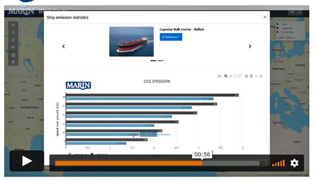 As part of its earlier research into wind propulsion, Marin developed the prototype of the application BlueRoute, a public cloud based web service. In BlueRoute it is possible to choose a route anywhere on the globe for a vessel equipped with assisting wind systems. The power performance and CO2 emission reduction are calculated using detailed wind statistics for the specified area. As part of the latest expansion of BlueRoute, in addition to the standard available vessel, participants in the project can use a vessel of their own design and configuration.
