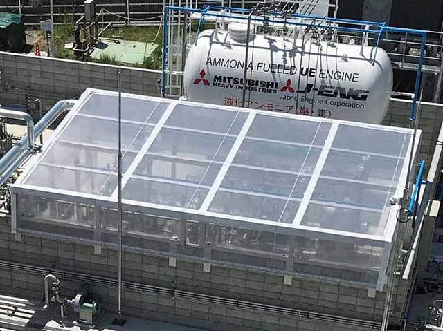 J-Eng is currently conducting tests of ammonia fuel under various conditions utilising an experimental, large-scale, low-speed two stroke marine engine located at the MHI Research and Innovation Centre. The ammonia FSS supplied by Mitsubishi Shipbuilding has been installed at MHI’s Nagasaki District facility, and supplies the ammonia fuel used to conduct the tests.