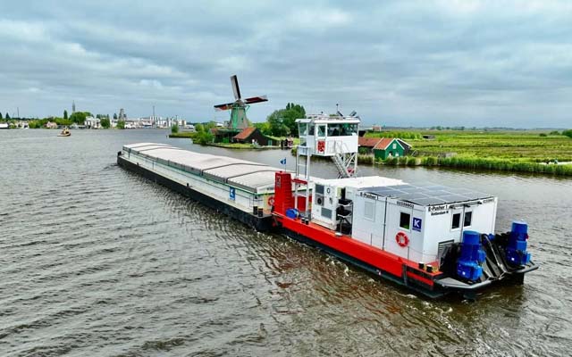 Because of the modular design, the construction process of the vessel took half the time of a traditional pusher. The E-Pusher 1 can push up to 4,000t of cargo and is expected to reduce CO2 emissions by 190,000 kg/yr, equivalent to about 15,000 truck journeys from the Port of Amsterdam to Cargill’s cocoa factory.