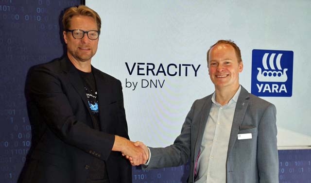 Yara Marine has signed an agreement with DNV’s independent industry cloud platform Veracity that will allow users of Yara Marine’s Fleet Analytics performance management and reporting tool to utilise the power of the Veracity platform and DNV’s data verification services.